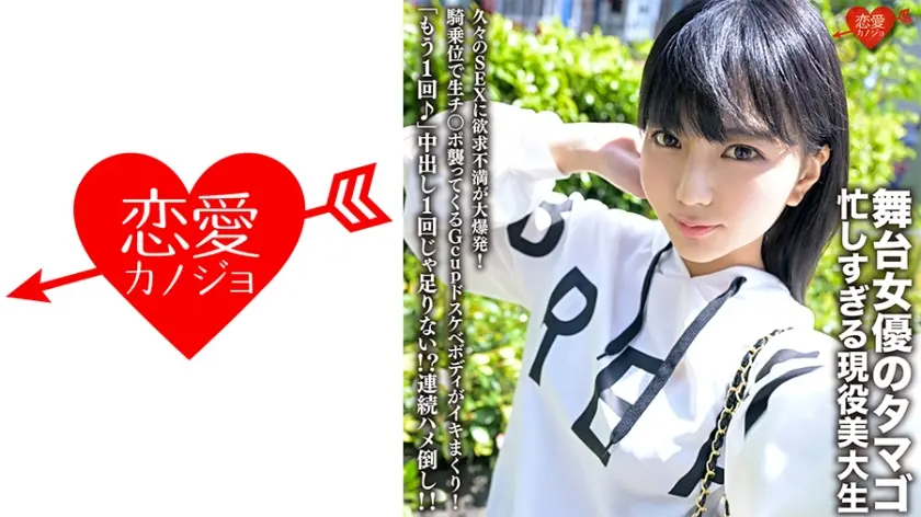 舞台女優のタマゴ、忙しすぎる現役美大生。久々のSEXに欲求不満が大爆発!騎乗位で生チ○ポ襲ってくるGcupドスケベボディがイキまくり!「もう1回♪」中出し1回じゃ足りない!?連続ハメ倒し!!