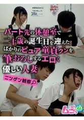 ニンゲン観察 パート先の休憩室で二十歳の誕生日を迎えたばかりのピュア童貞クンを筆おろしするエロく優しい人妻